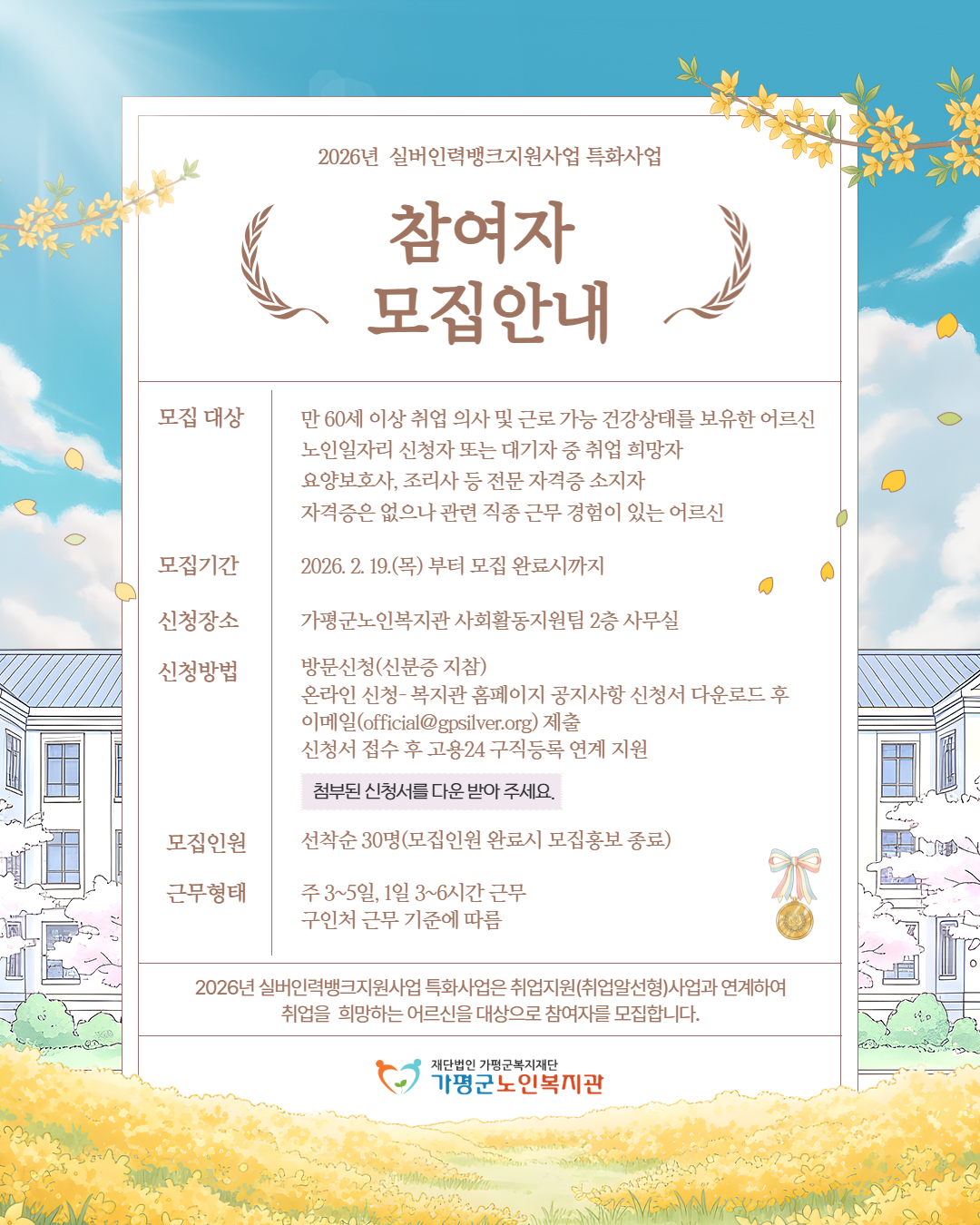 2026년 실버인력뱅크지원사업 특화사업 참여자 모집안내