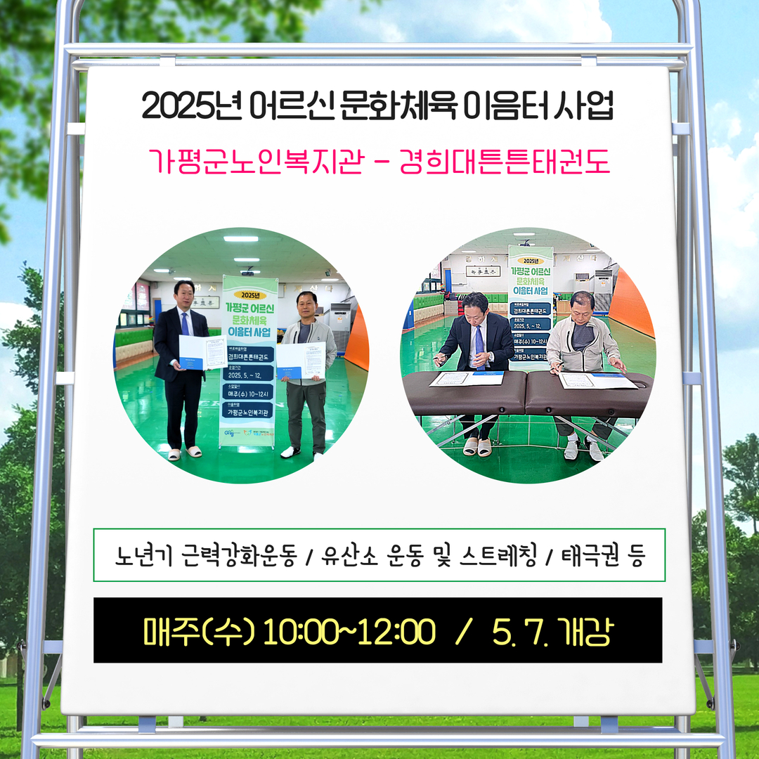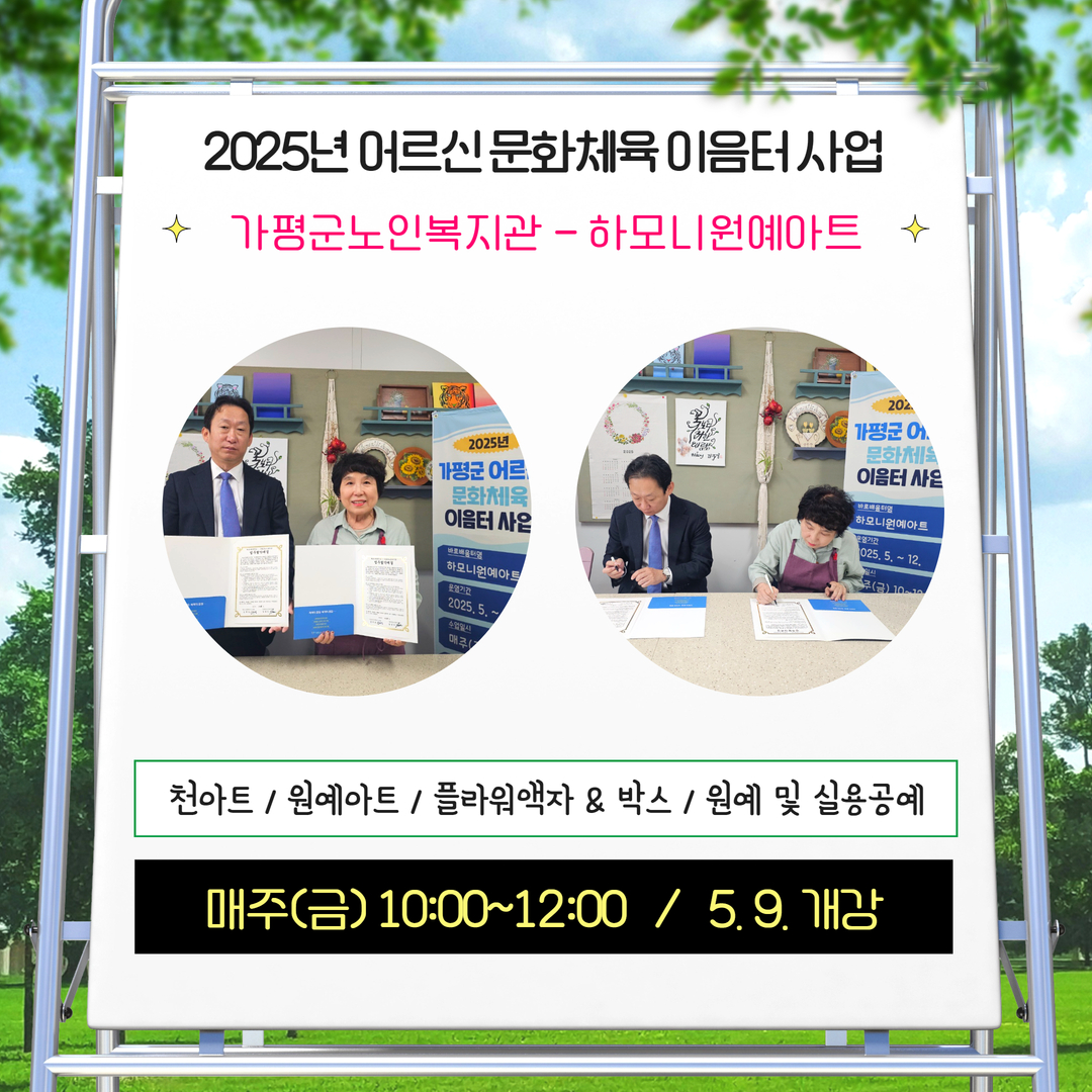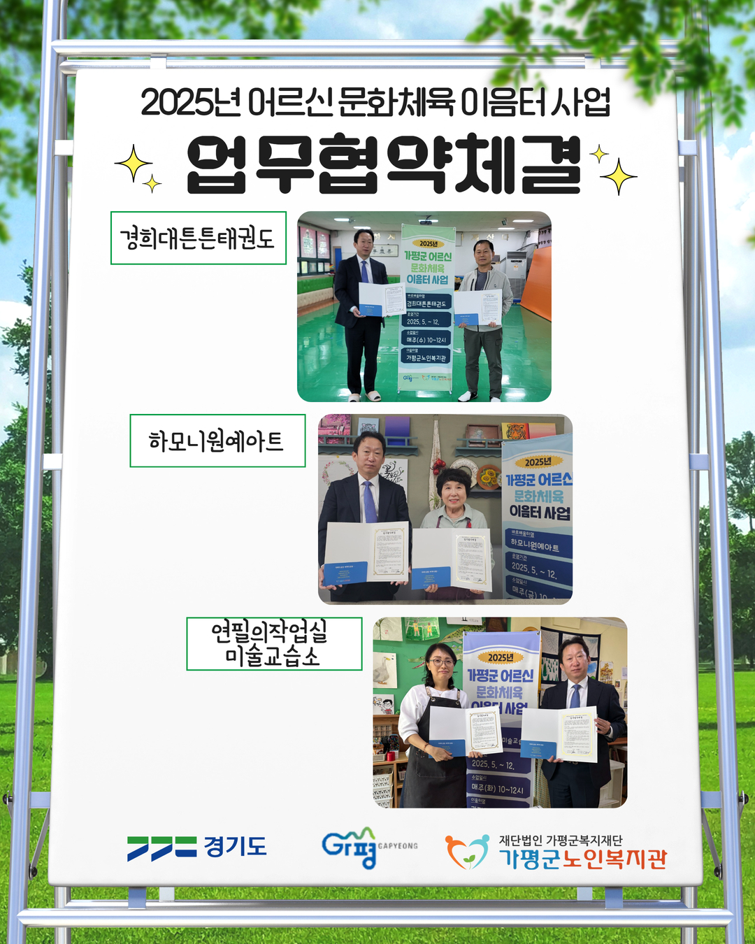 경기도 · 가평군 지원을 받아 시행되는 2025년 어르신 문화체육 이음터 사업의 바로배움터별 업무협약식이 진행되었습니다.